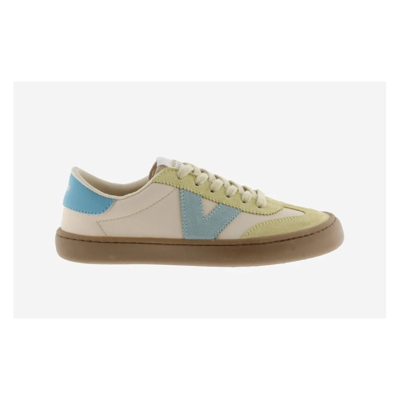 Estan fabricades a Espanya en efecte pell blanca amb peces de color i serratge. La V de victòria lateral i la peça del darrere contrasten en colors a joc. Sola de PVC Flexible elaborada amb olis vegetals en lloc de minerals, reduint així limpacte mediambiental.