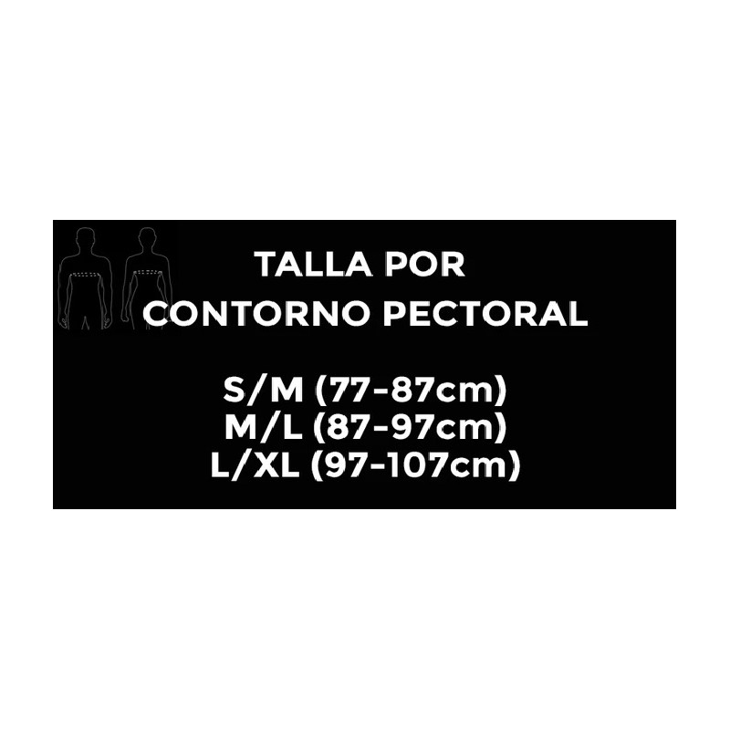 Producte en diverses talles, mides segons contorn de pit: S/M (77-87cm); M/L (87-97cm) ; L/XL (97-107cm). Es recomana mesurar la màxima amplitud pectoral entre la línia mamària i les aixelles.
