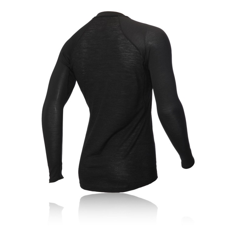 Té un sistema de control de la humitat que assegura que la part superior es mantingui calenta i asseca durant tot l'entrenament o la carrera. Oferint una gran comoditat, aquesta samarreta composta de llana Merino Australiana fina de 18.5 micres brinda una fantàstica sensació a la pell i un ajustament perfecte. Les mànigues llargues i el coll alt amb UPF 40+ ajuden a protegir el teu cos de les canviants condicions climàtiques, mentre que per altra banda ofereix una gran versatilitat que et permet fer-lo servir com una capa base sol o sota una altra peça. Els forats al polze proporcionen una opció addicional i eviten que les mànigues s'apugin pel braç estant protegit i còmode.
