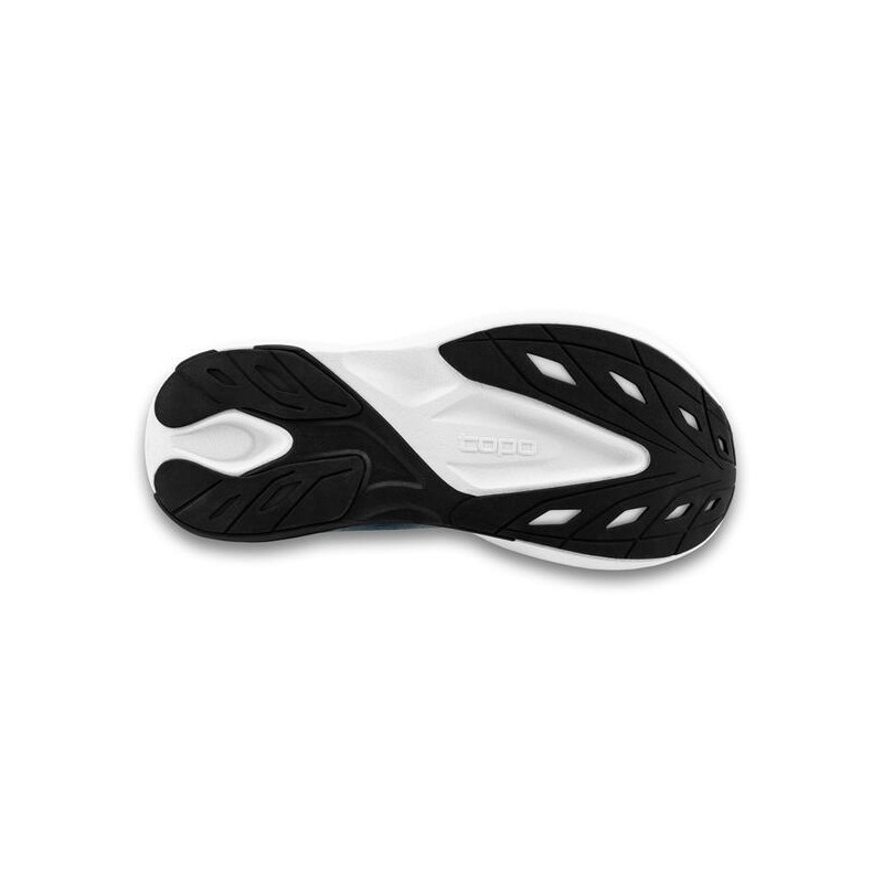 Spiccano il tallone oversize e la zona anteriore preformata, che ottimizzano la propulsione e il ciclo del passo.
